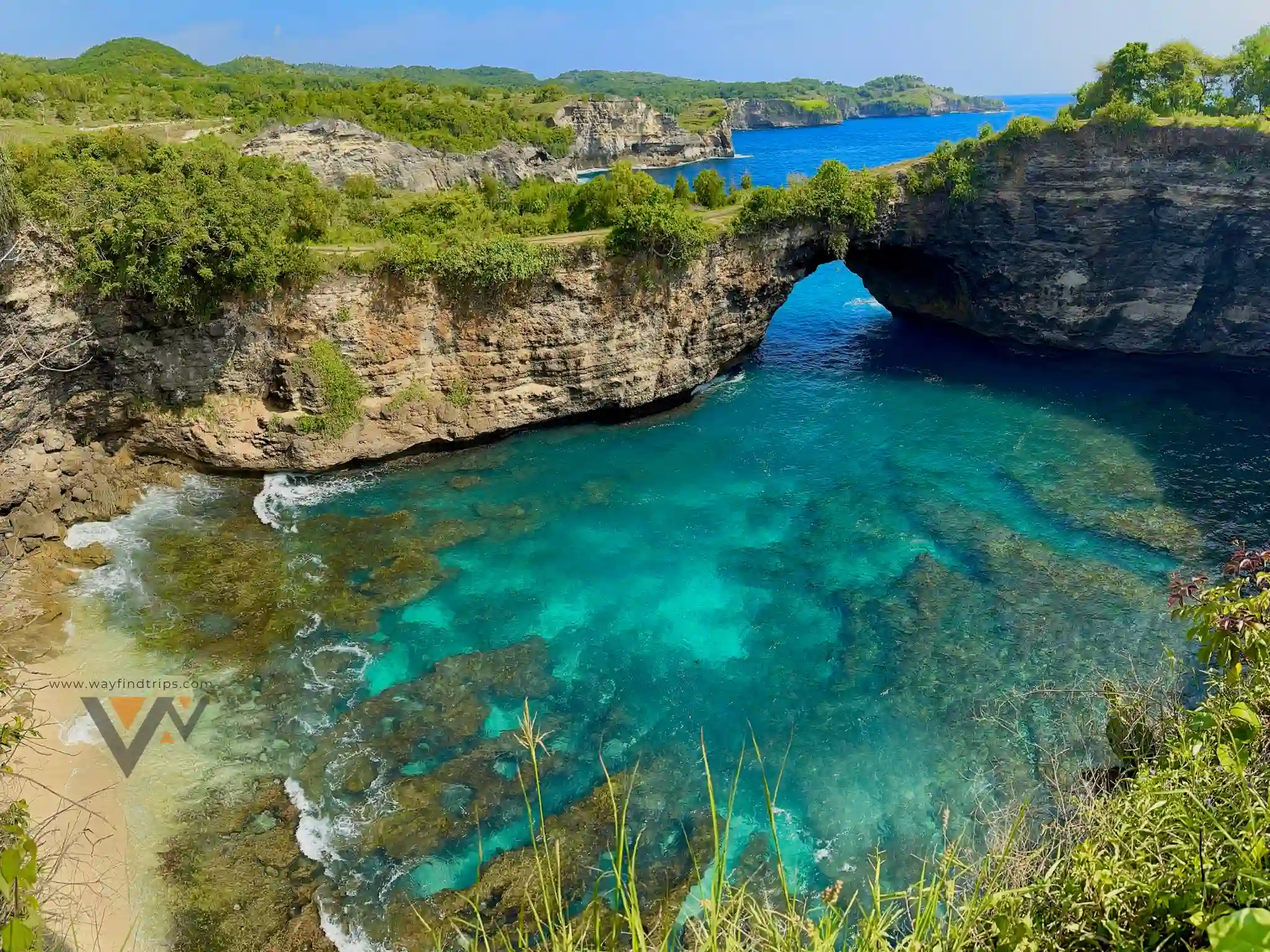 If you’re lucky enough to be texturing at low tide, you’ll have the opportunity to go down and properly stand on the natural beauty of the rock; you may also choose to swim in the hushed lagoon. However, if the waves are high, you can only view everything below you and spread out as far as the eye can see while standing on a rock high overhead.